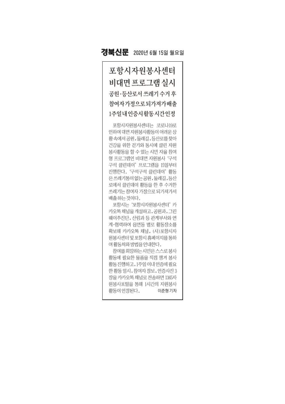 | 작성자 | 포항시자원봉사센터 | 작성일 | 2020-06-15 11:44 |