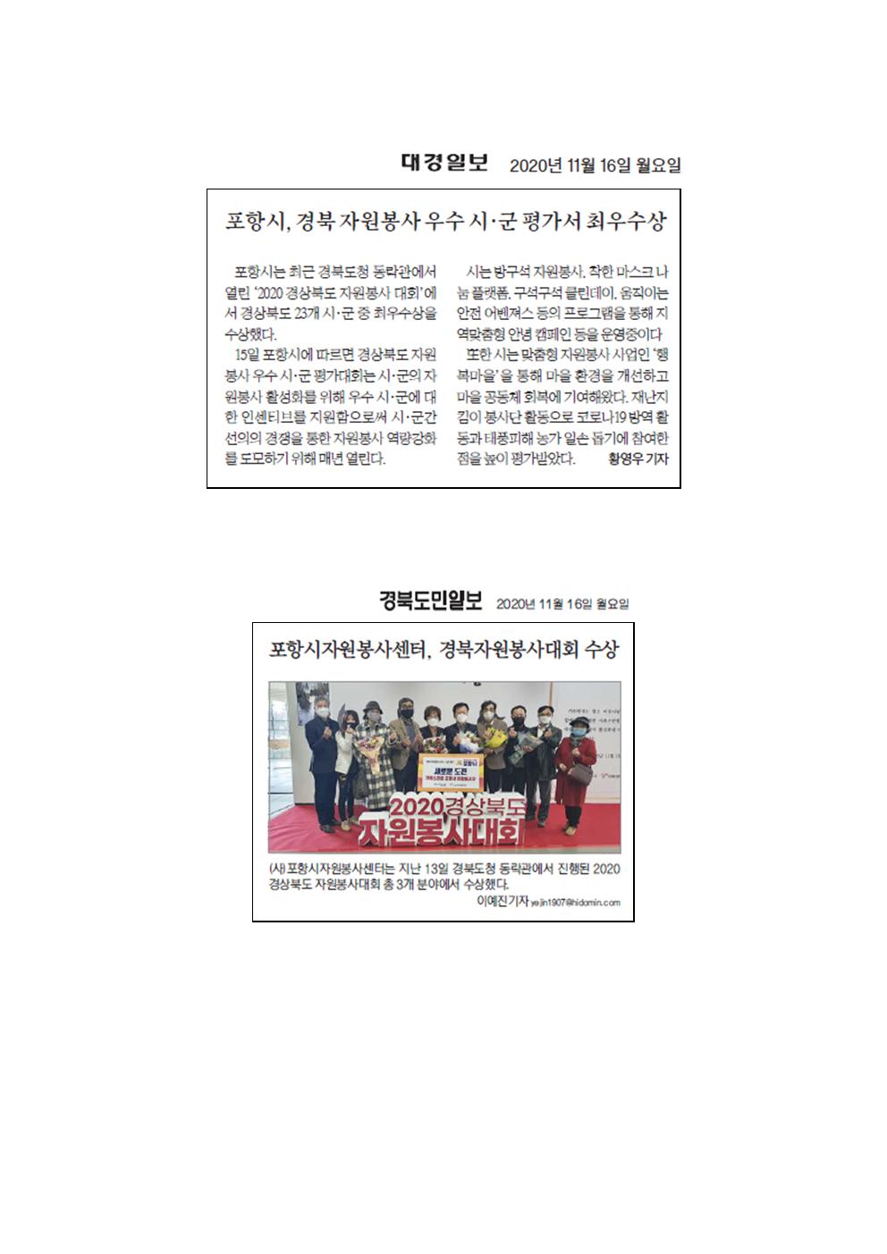 | 2020 경북 시군자원봉사평가 최우수상 수상 | |||