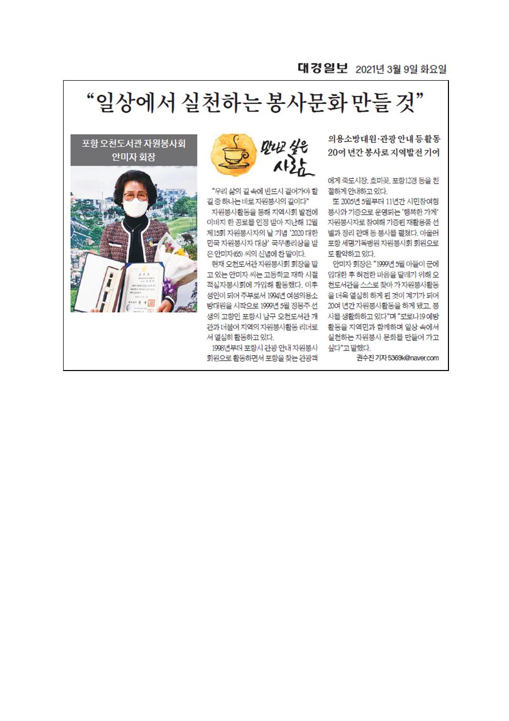 | 안미자 오천도서관자원봉사자회장 | |||