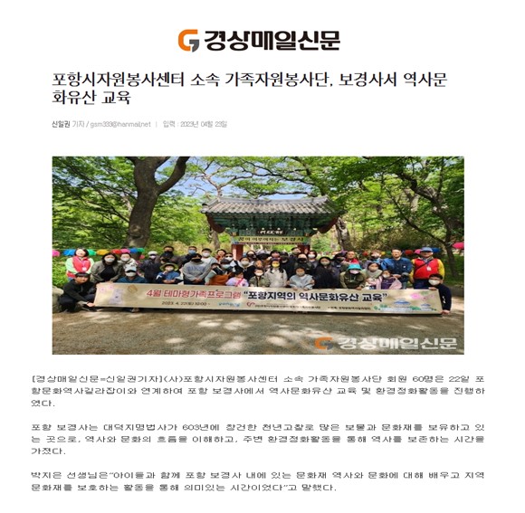 | [4월 테마형가족프로그램 포항지역의 역사문화유산 교육] | |||