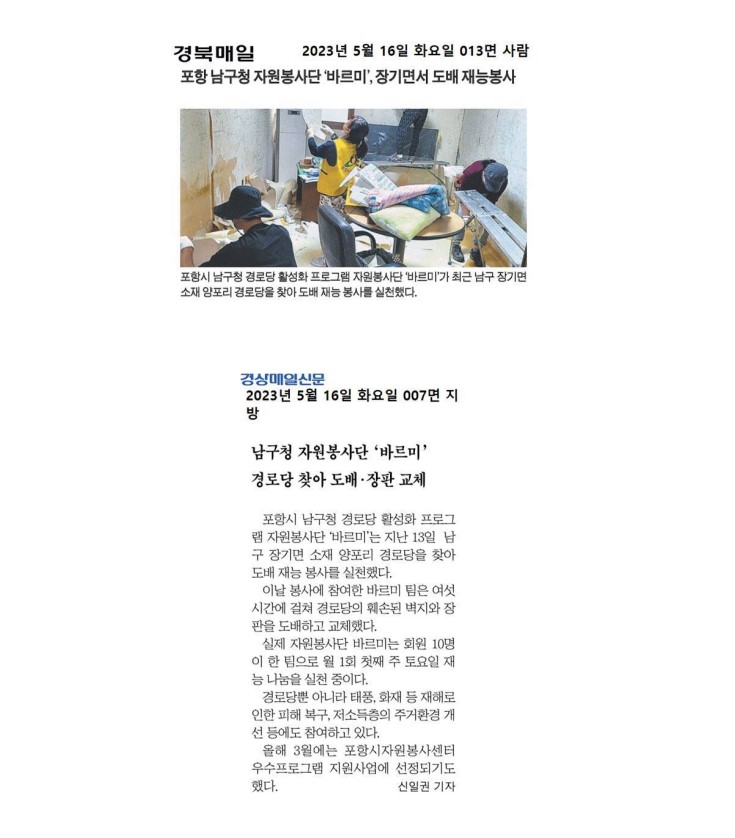 | 작성자 | 포항시자원봉사센터 | 작성일 | 2023-05-18 09:12 |