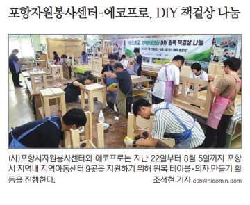 포항시 관내 지역아동센터 DIY 원목 책걸상 나눔 |