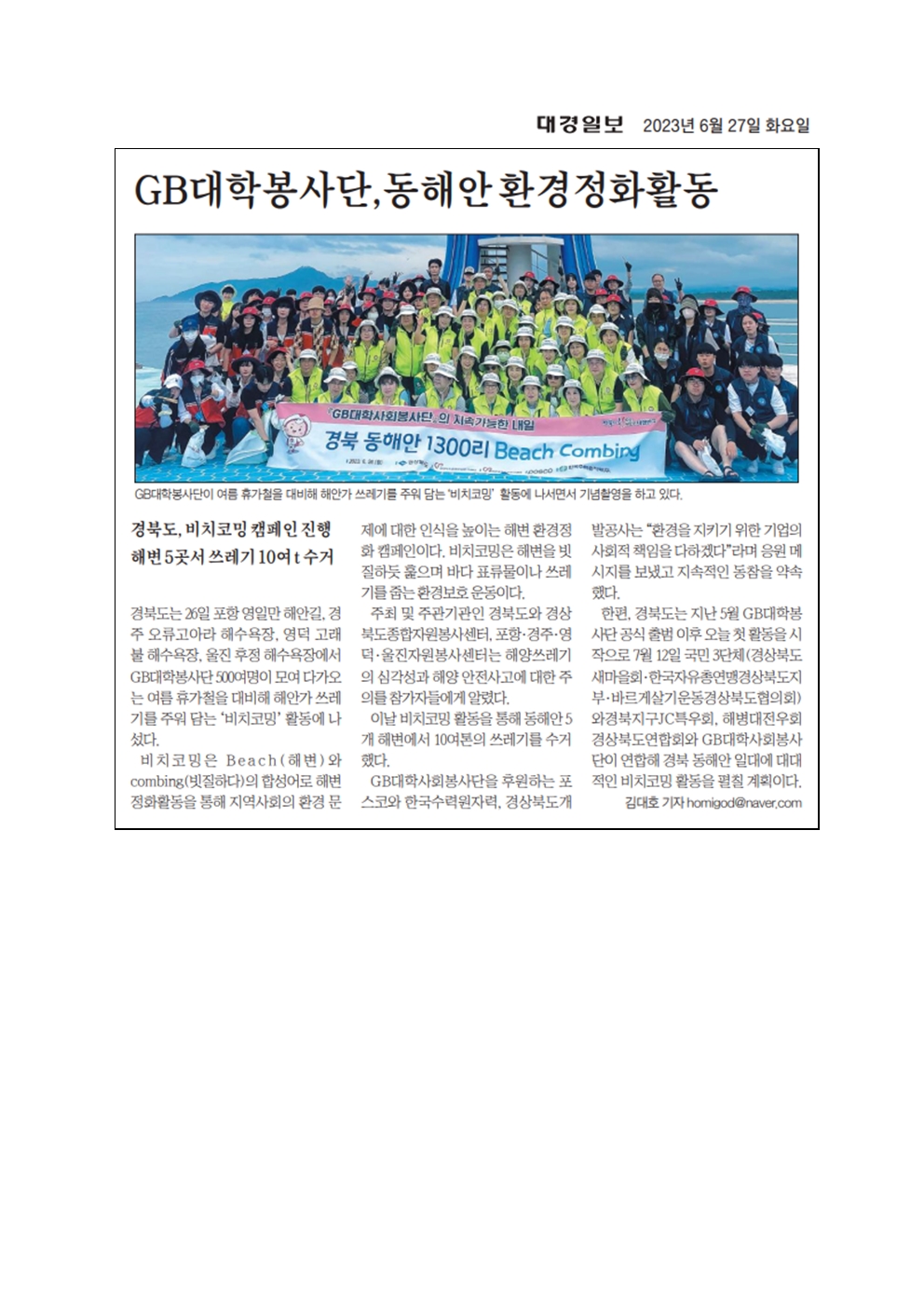 | GB대학생 봉사단 동해안 비치코밍 캠페인 | |||