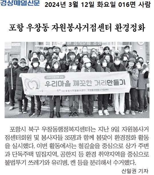 | 포항 우창동 자원봉사거점센터, 환경정화 | |||
