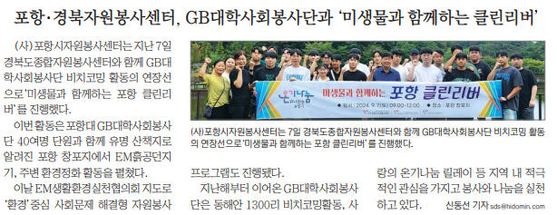 | 포항ㆍ경북자원봉사센터, GB대학사회봉사단 미생물과 함께하는 클린리버 | |||