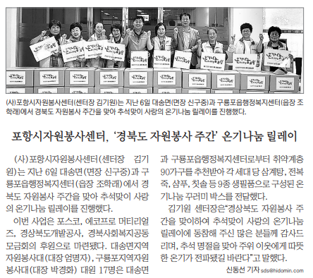 | 추석맞이경북도 자원봉사 주간 온기나눔 릴레이 | |||