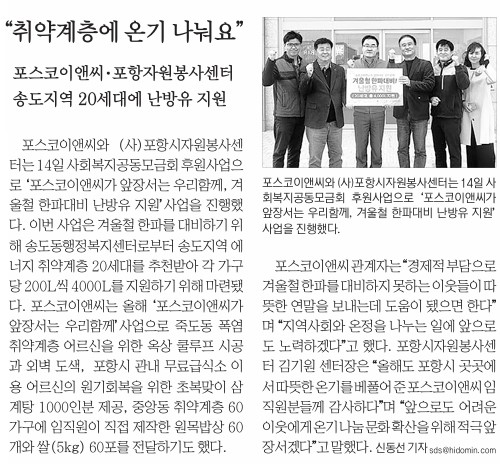 | 포스코이앤씨가 앞장서는 우리함께『겨울철 한파대비 난방유 지원』 | |||||||