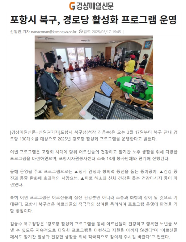 | 포항시 북구, 경로당 활성화 프로그램 운영 | |||