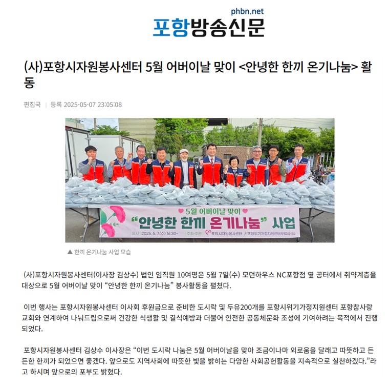| (사)포항시자원봉사센터 5월 어버이날 맞이 활동 | |||