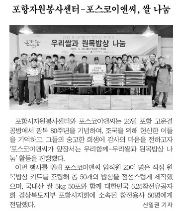 | 포스코이앤씨, 광복 80주년을 맞아 따뜻한 온기나눔 전파 | |||
