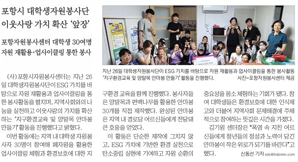 | 포항시 대학생자원봉사단 이웃사랑 가치 확산 앞장 | |||