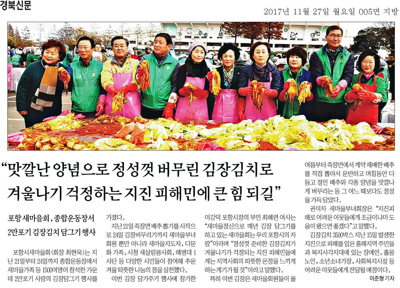 | 피해민에 큰 힘 되길맛깔난 양념으로 정성껏 버무린 김장김치로 | |||